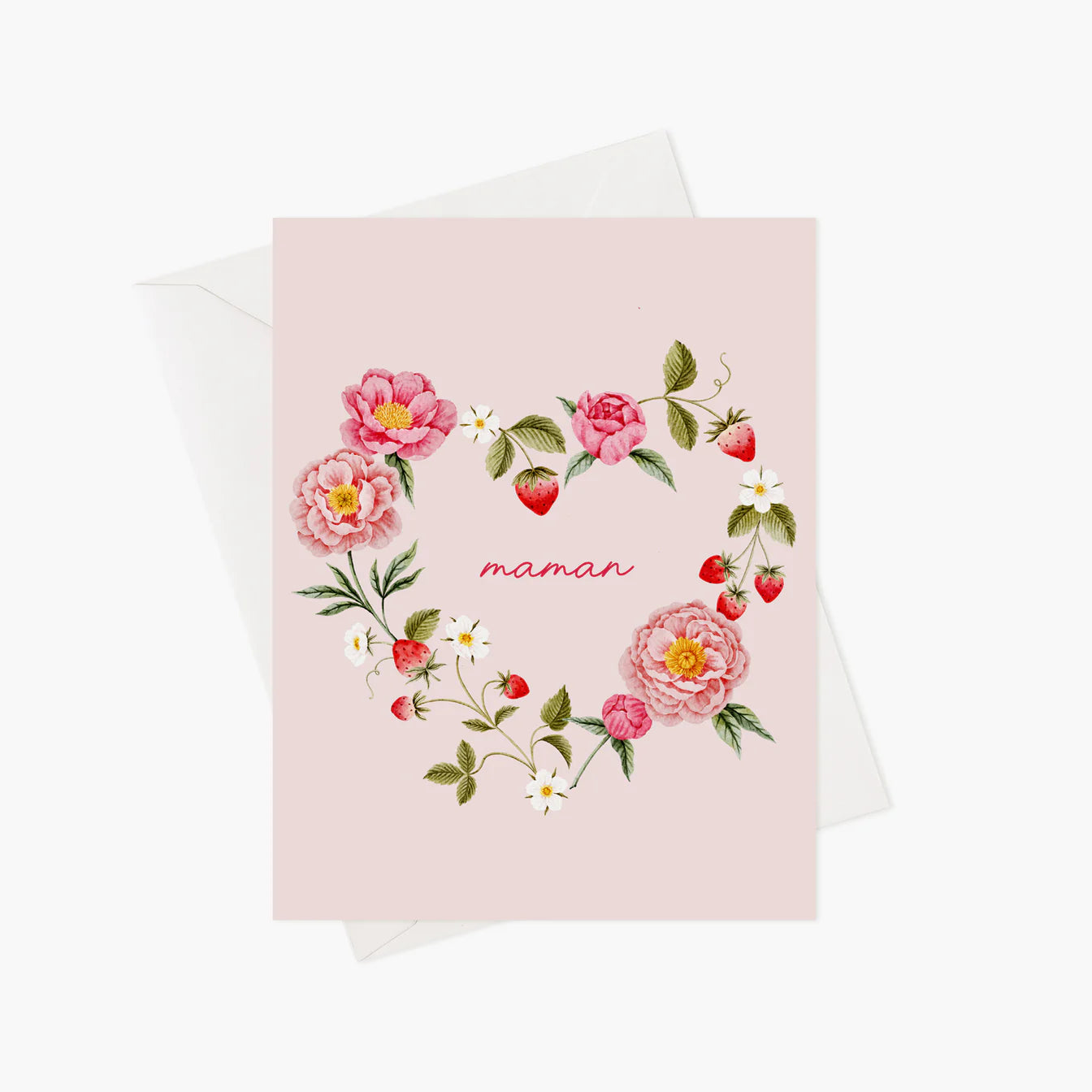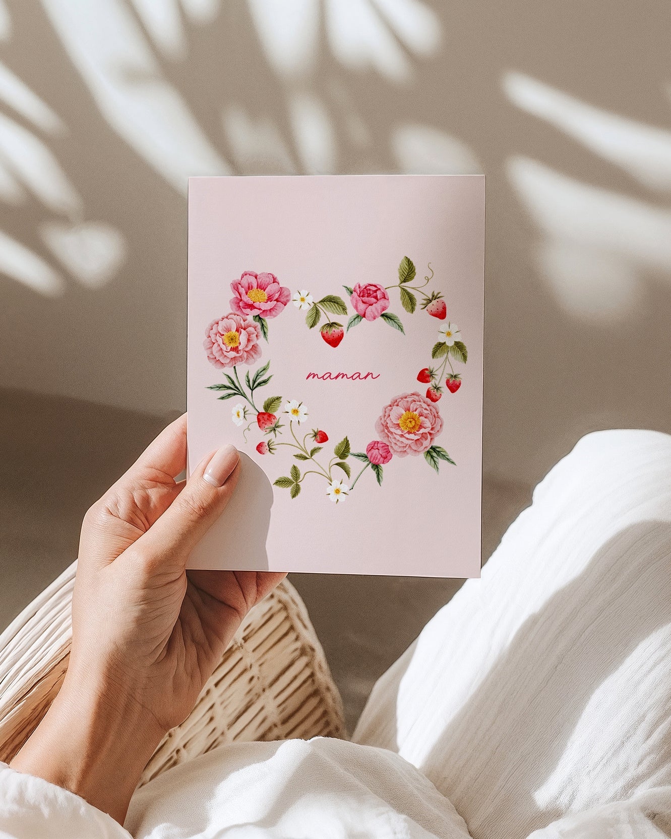 Carte de souhaits - Marie-Lise Illustration - Pivoines et fraises pour maman