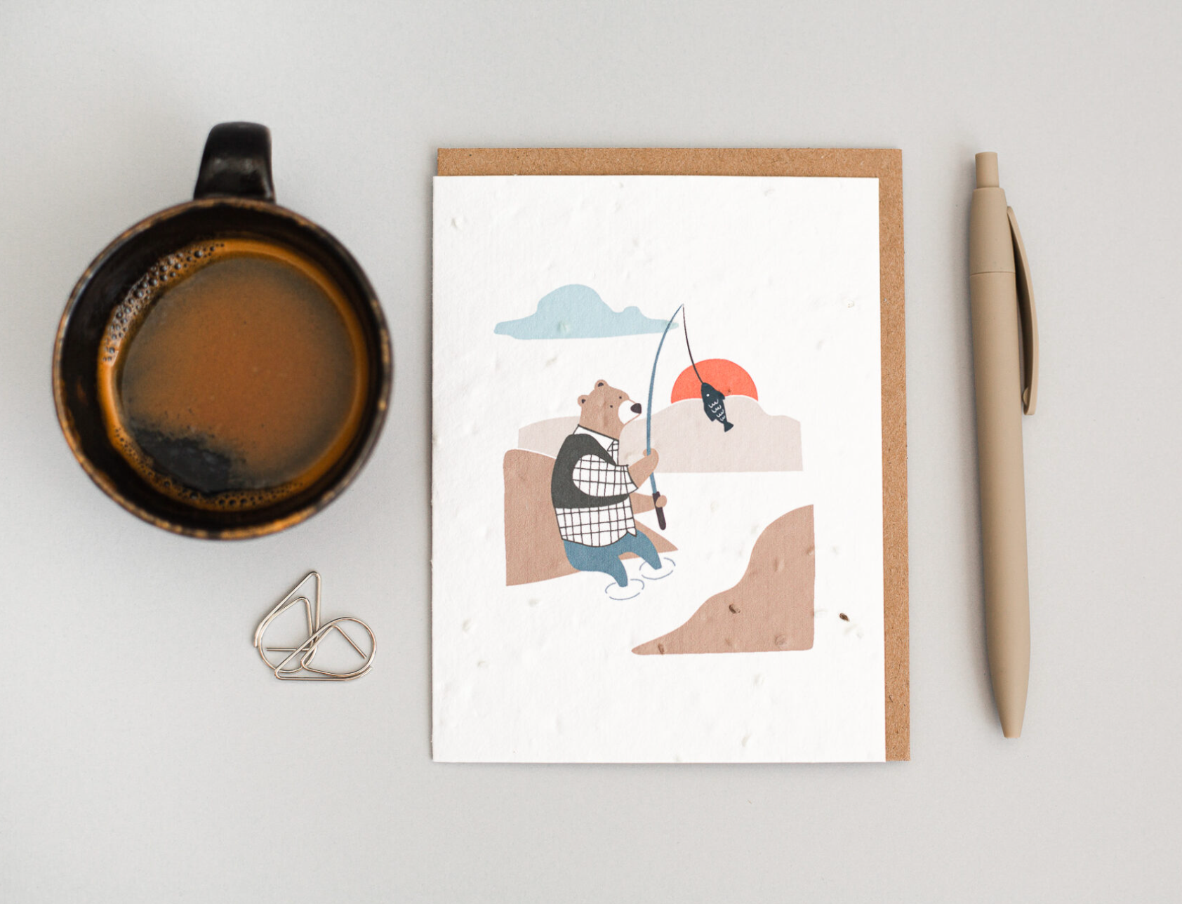 Carte de souhaits – Ours pêcheur (à planter)