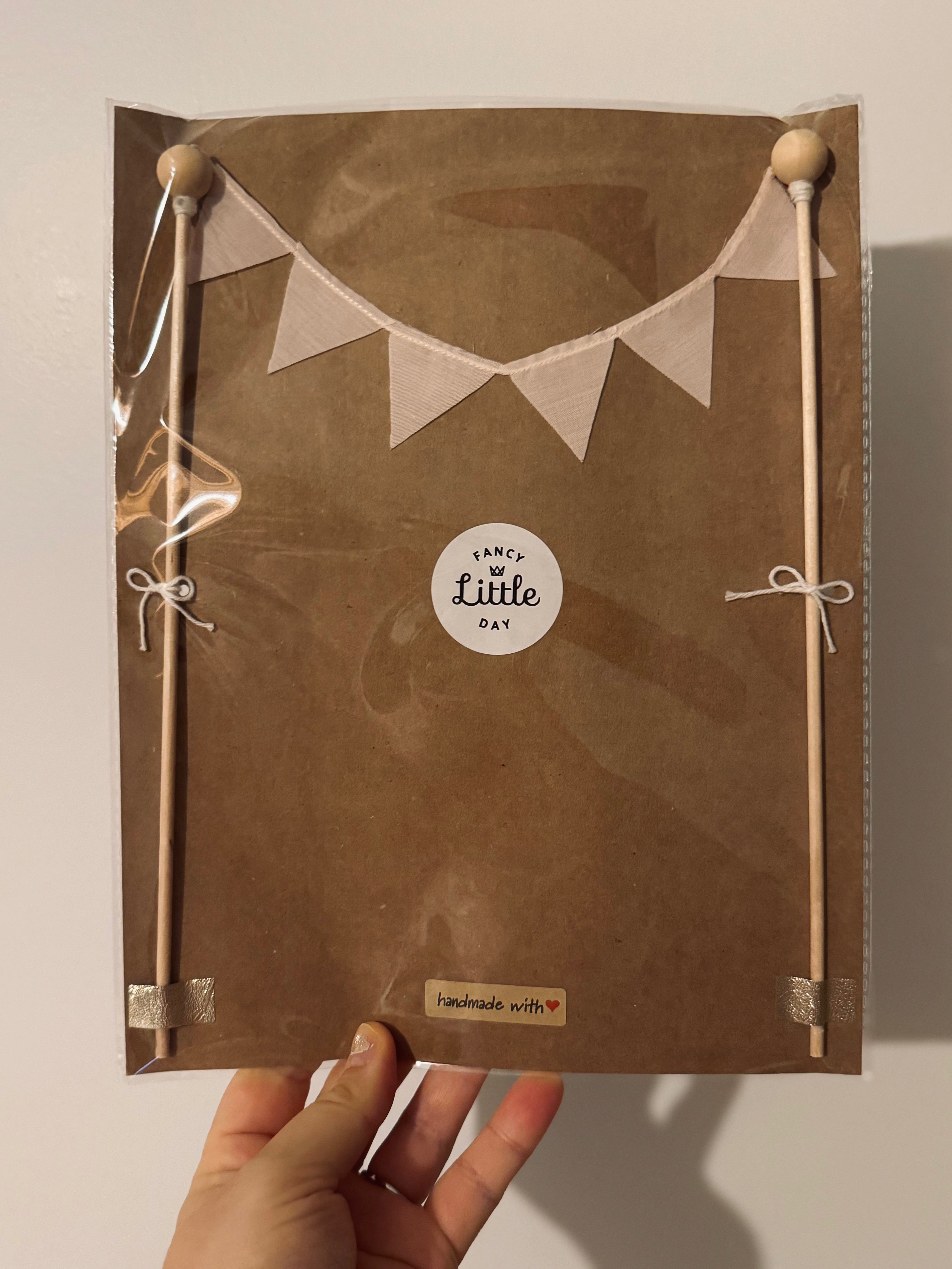 Décoration gâteau (CAKE TOPPER) : FANION ROSE PÂLE