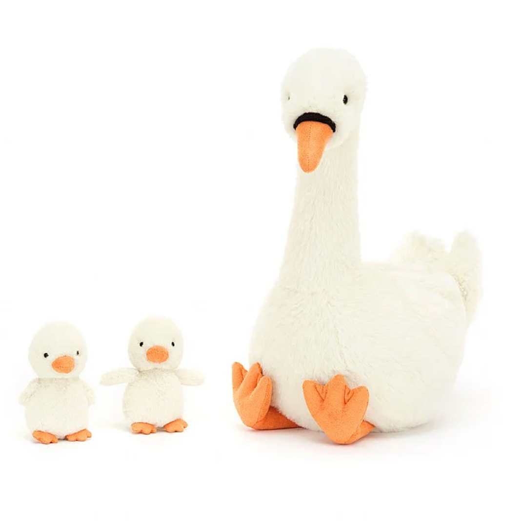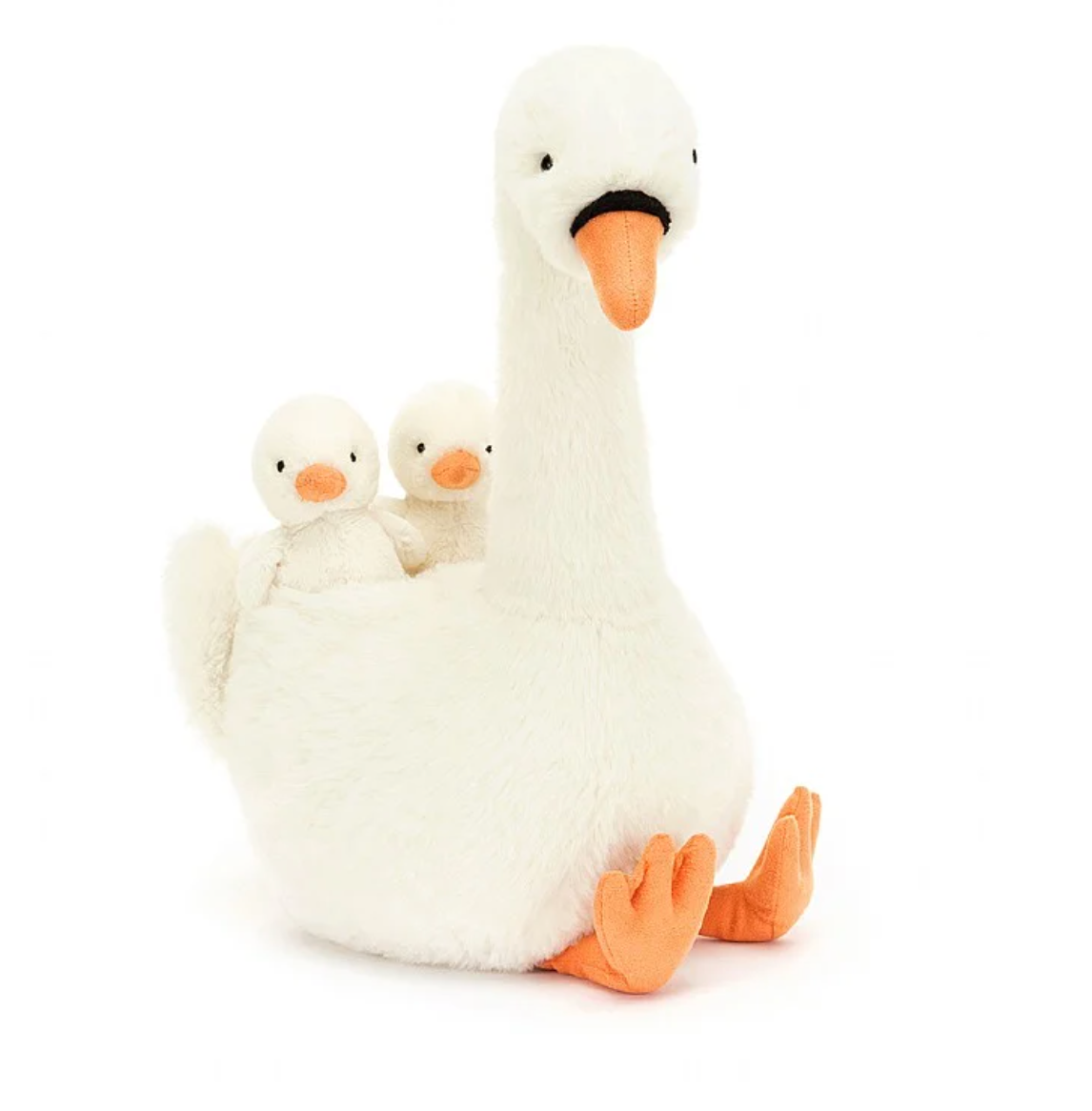 Featherful Swan est un parent très fier, protégeant ses jumeaux avec leurs ailes crème moelleuses ! Cet élégant cygne a une riche fourrure vanille, rehaussée par des pieds en suédine orange et un bec assorti avec des détails passepoilés. Les bébés blottis sur leur dos enneigé peuvent sortir et explorer par eux-mêmes !