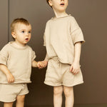 Ensemble deux pièces en tricot de coton. Souple et doux, cet ensemble offrira un confort absolu à vos minis. Idéal pour l'après baignade, ce set deviendra rapidement votre go-to pour toutes sortes d'occasions.