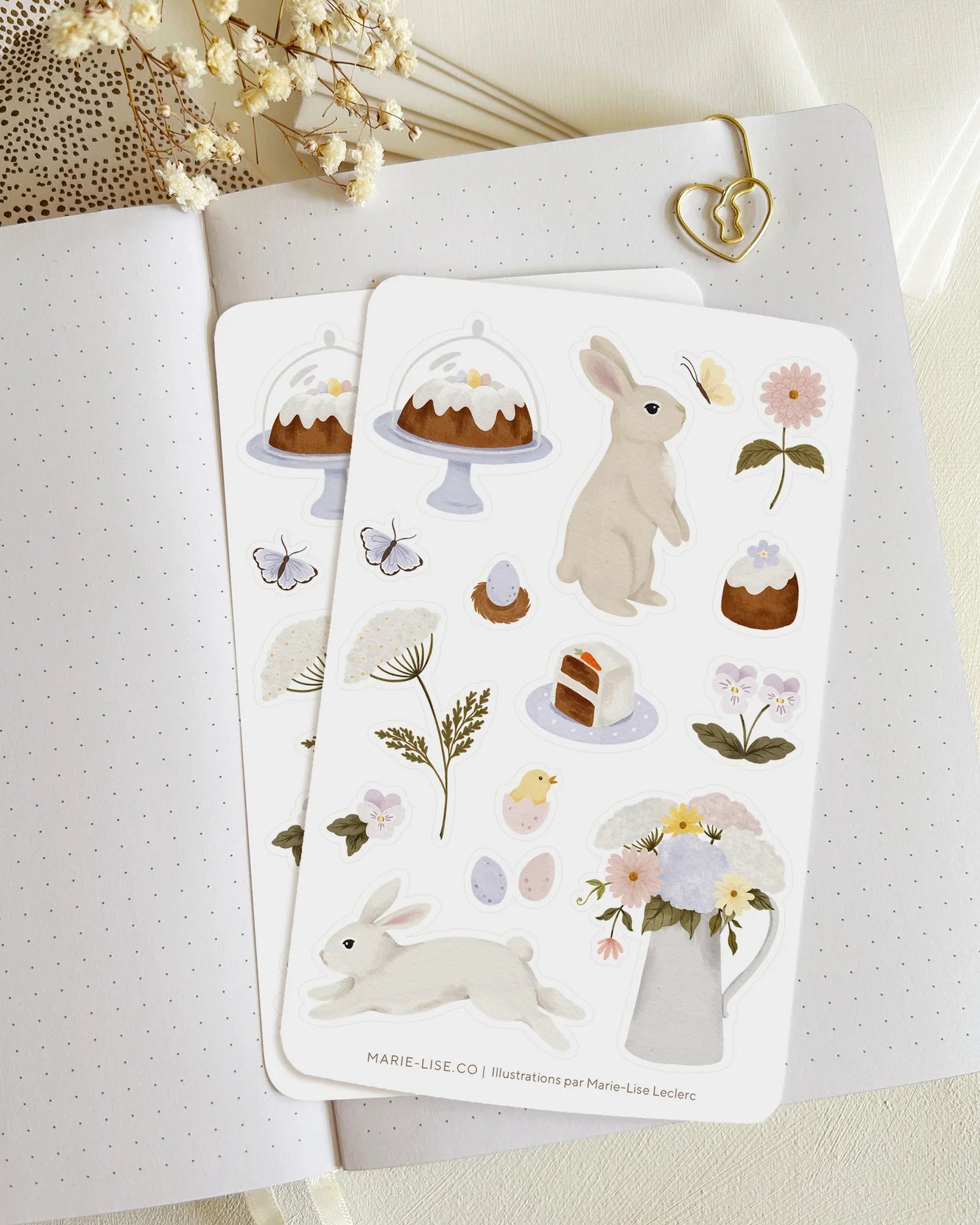 Feuille d'autocollants - Marie-Lise Illustration - Lapins de Pâques