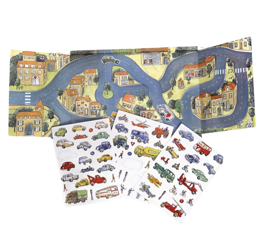 Le jeu d'activité magnétique s'ouvre pour montrer une grande scène routière dans une adorable ville. Créez votre histoire idéale sur la ville avec les aimants, les voitures, les plans, les motards, les marcheurs et bien plus encore.