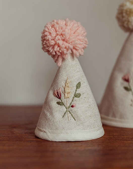 Adorable chapeau réutilisable pour ajouter de la joie à vos fêtes avec l'ajout d'une BRODERIE FLEURS faite à la main par La Femme Forêt !