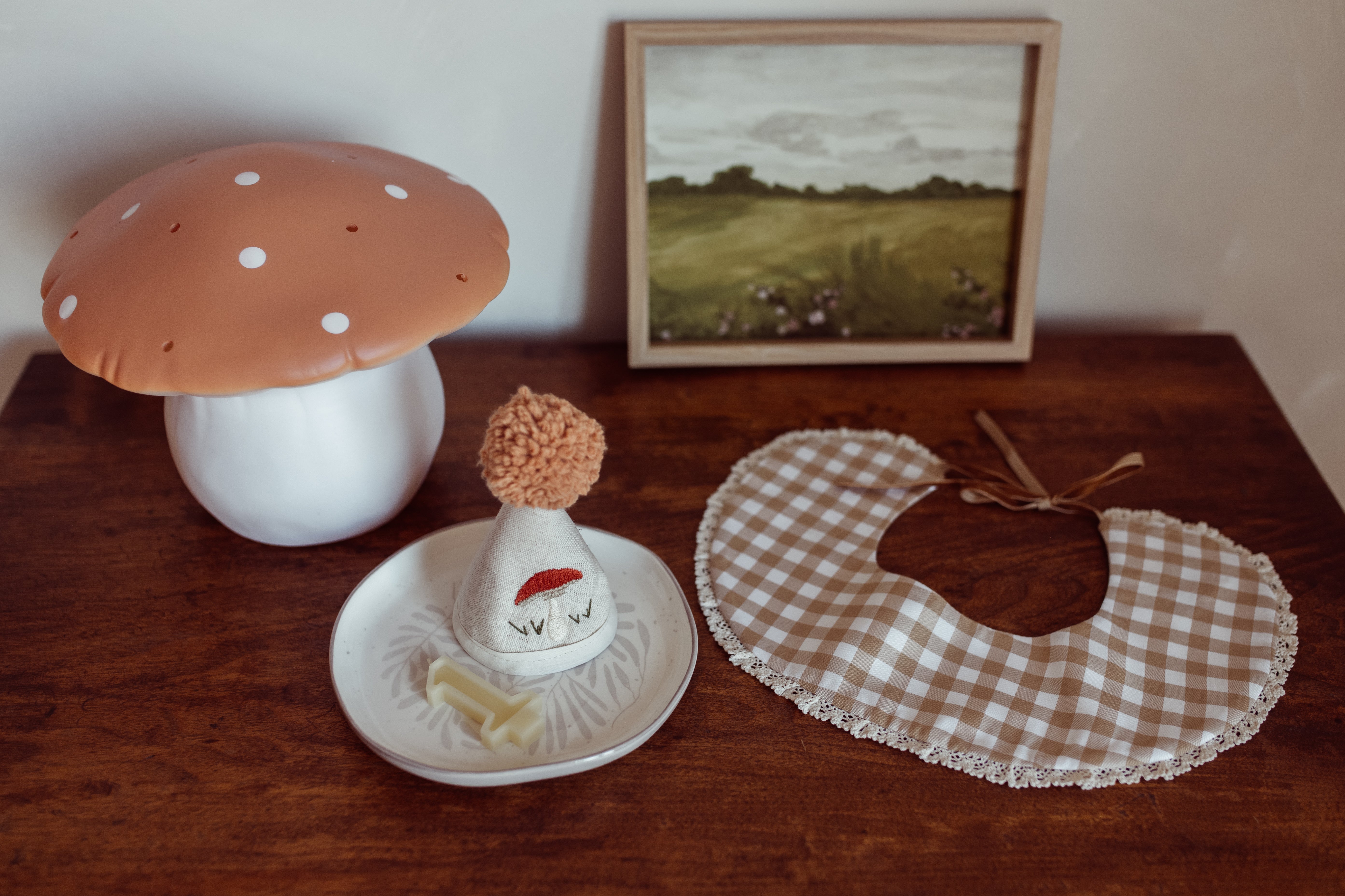 Adorable chapeau réutilisable pour ajouter de la joie à vos fêtes avec l'ajout d'une BRODERIE Champignon faite à la main par La Femme Forêt !