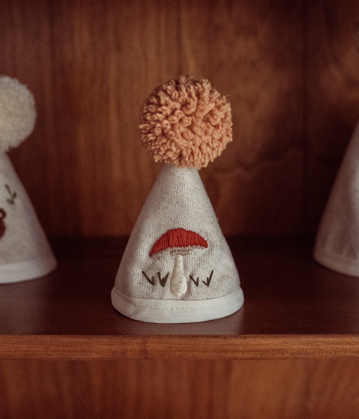 Mini Chapeau de fête : pompon caramel - Broderie Champignon