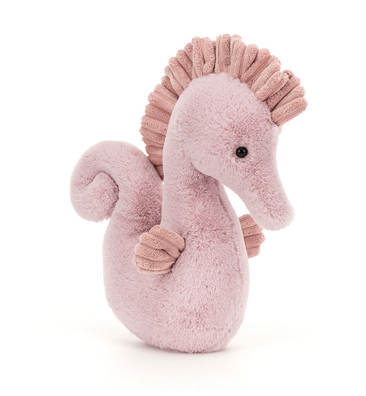 Divinement délicate dans des pastels apaisants, Sienna Seahorse est une mignonne délirante et bouclée ! D'une douceur rose crème glacée, avec une crinière cordy et des nageoires assorties, cet hippocampe à queue tourbillonnante adore brouter les algues sucrées. Voudriez-vous un brin ?